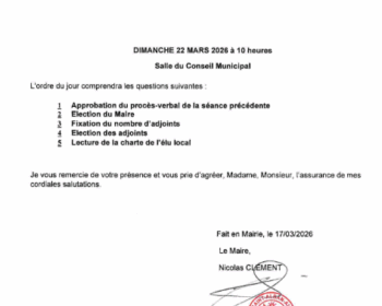 Le Plan Local d’Urbanisme intercommunal (PLUi) a été adopté par le conseil communautaire le 24 février 2026. La délibération correspondante est actuellement affichée en mairie, sur le panneau extérieur, afin d’en assurer l’information au public. L’ensemble du dossier est également consultable en ligne sur le site de la Communauté de…