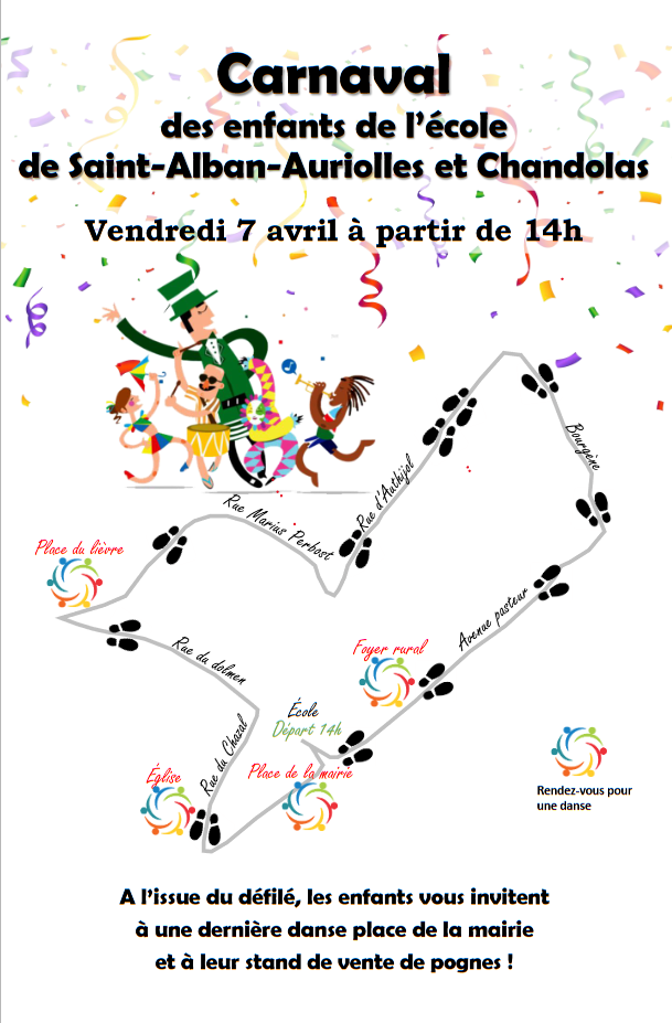 Les enfants d’abord, l’association des parents d’élève de Saint-Alban-Auriolles et Chandolas vous convie au carnaval de l’école le vendredi 7 avril.