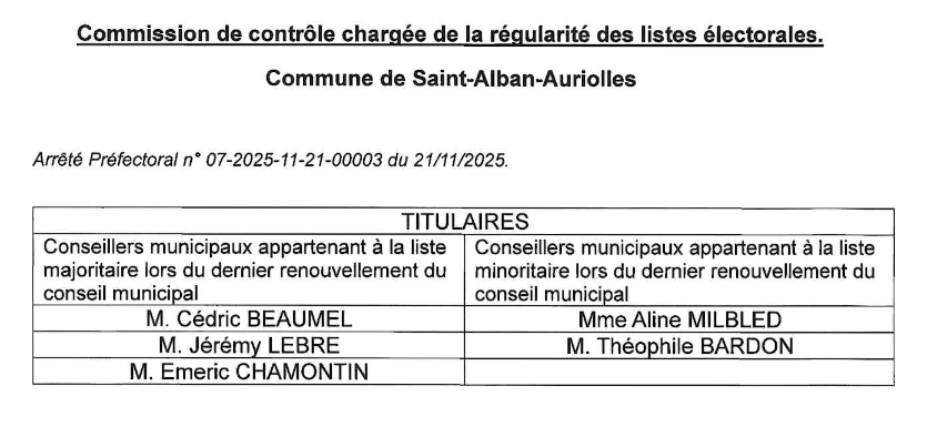 Arrêté préfectoral portant nomination des membres des commissions de contrôle chargées de la régularité des listes électorales