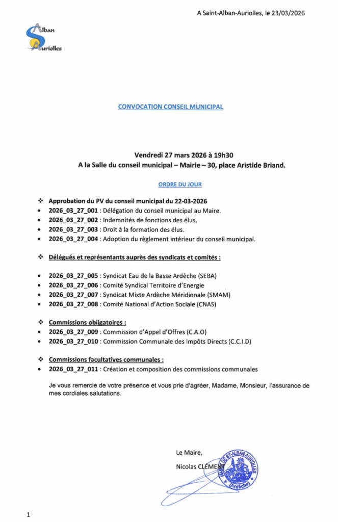 Ordre du jour du conseil municipal du 27 mars 2026
